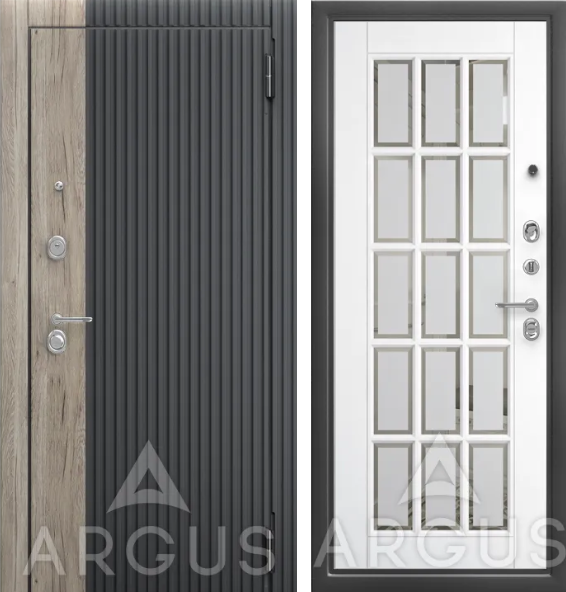 Аргус Входная дверь ДА109 Антик серебро Мэрилин (Эмалит арктик, Зеркало с фацетом и пескоструйной обработкой,Фруме, Силк флай,Рустик пепельный