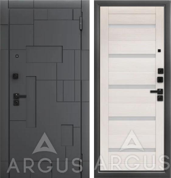 Аргус Входная дверь ДА97 Black Style Антик серебро Александра Белая лиственница, Белый лакобель,Корса, Силк флай