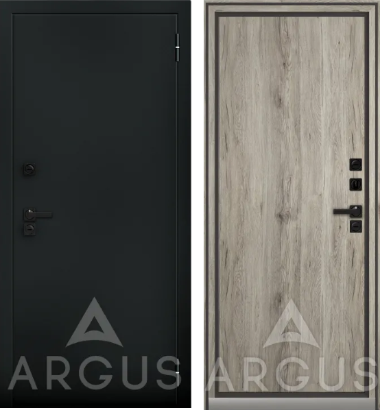 Аргус Входная дверь Тепло Букле черный Рустик пепельный